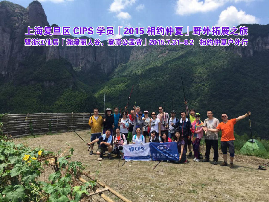 为增进师生情谊、促动学员交流、丰富CIPS课堂,建立团结、高效的采购人脉圈和互动平台,我中心于2015.7.31-8.2举办了一次上海复旦区CIPS学员「2015相约仲夏」野外拓展之旅,暨浙江仙居「溯溪丽人谷,登顶公盂背」相约仲夏户外行活动。